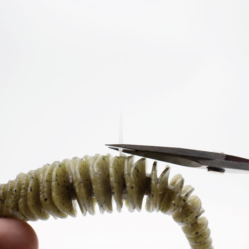It's very simple to use. Stab it on the worm! Cut the tip! Pass it through the hook and the set is complete! The tip has a tapered shape to make it easy to stab the worm. The tip shape is tapered and stretched so that it can be straightened to the desired position.